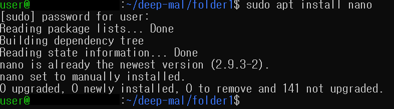 sudo apt install nano 명령어를 통해 nano를 설치할 수 있습니다.