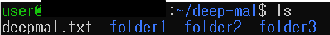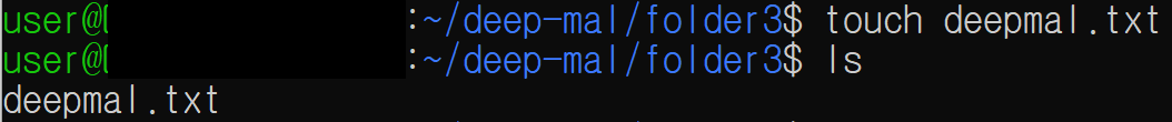 touch 명령어로 deepmal.txt 파일을 생성 한 뒤, ls 명령어로 deepmal.txt가 생성됨을 확인합니다.