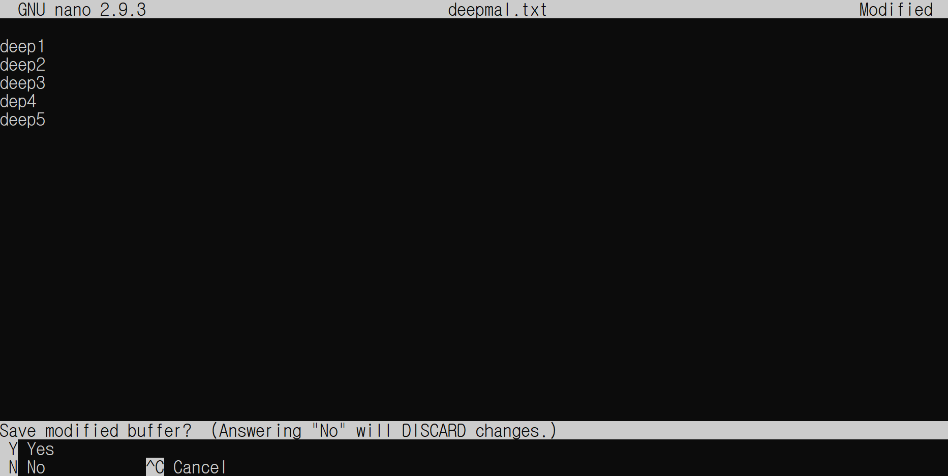nano 명령어를 통해 deepmal.txt를 작성합니다.