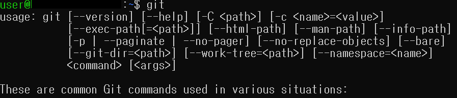 - 다음과 같이 git 명령어를 통해 설치 여부를 확인할 수 있습니다.