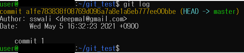 ssali<deepmal@gmail.com>라는 Author가 방금 commit을 수행하였음을(메시지: commit 1) 알 수 있습니다.