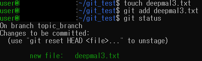 git add 명령어를 통해 deepmal3.txt를 staging area로 보냅니다.