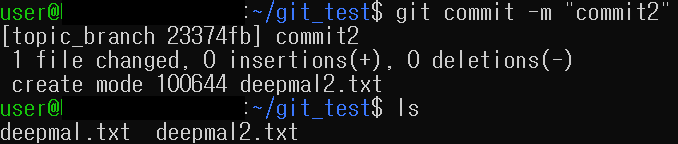 1. deepmal2.txt 파일을 생성한 뒤, commit 수행(commit 메시지: "commit2")