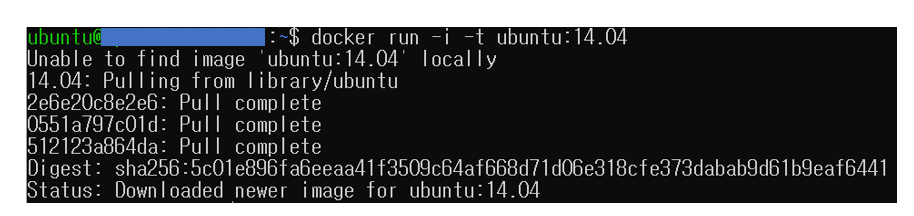 ubuntu:14.04 이미지가 local 도커 엔진에 존재 하지 않기 때문에, 도커 허브에서 이미지를 내려받습니다.