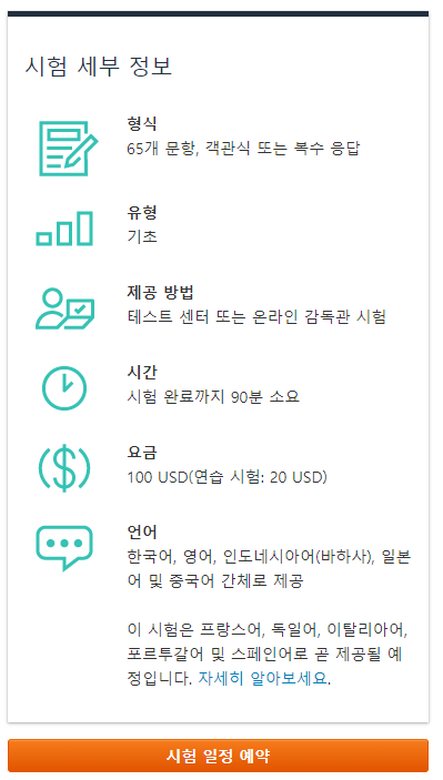 - 시험 형식: 65개 문항, 객관식 또는 복수응답 / 1,000점 만점에 700점 이상 합격