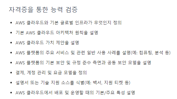 AWS Certified Cloud Practitioner는 AWS 클라우드에 대한 전반적인 이해를 효과적으로 입증하는 데 필요한 지식과 기술을 갖추는 것을 목적으로 합니다.