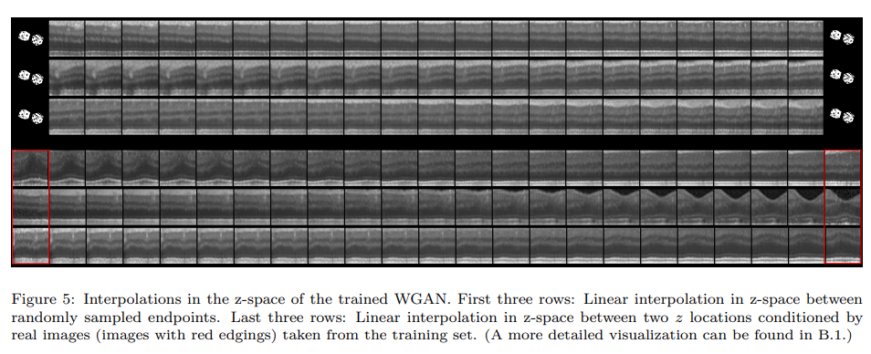 Figure 5) Interpolations in the z-space of the trained WGAN