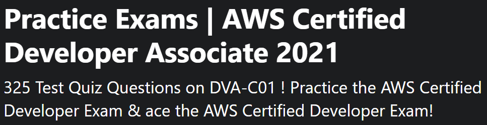 - Udemy에서 제공하는 Practice Exams | AWS Certified Developer Associate 2021이 있습니다.