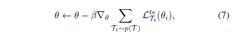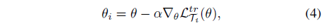 - one gradient update를 위하여, new adapted parameters $\theta_{i}$는 식(4)와 같습니다.
