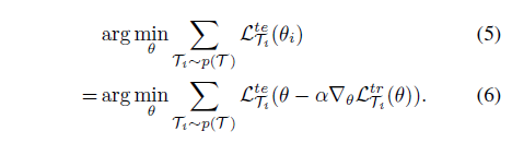 meta-objective는 식 (5), (6)과 같습니다.