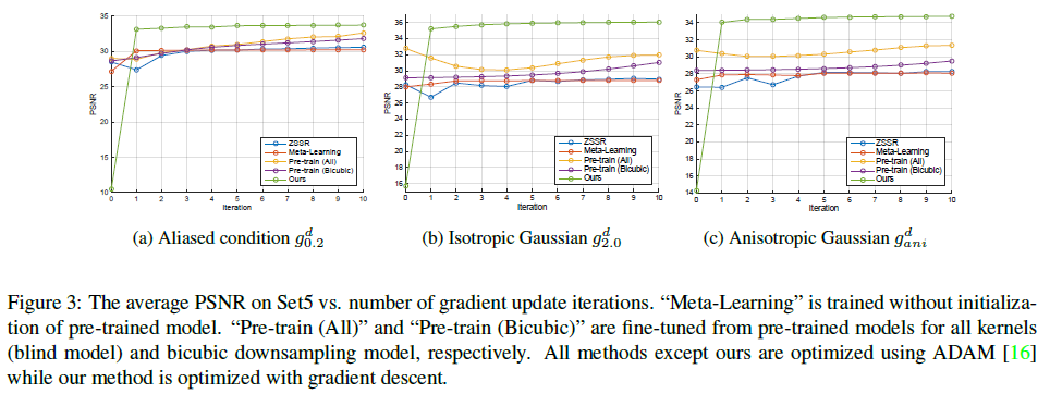 - MZSR은 one single gradient descent updates로 ZSSR과 필적할 성능을 보여주었습니다.