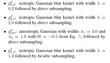 - 구체적으로, blur kernel을 위해 isotropic과 anisotropic Gaussian kernel을 사용하였습니다.