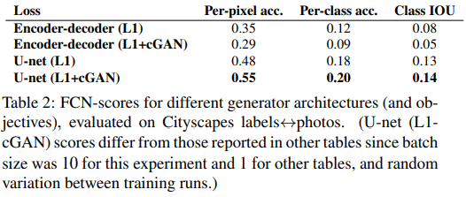 Table 3: FCN-scores for different receptive fields size od the discriminator