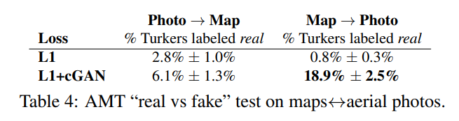 - map<-> aerial photograph, grayscale -> color Task에서의 perceptual realism 결과를 검증한 내용입니다.