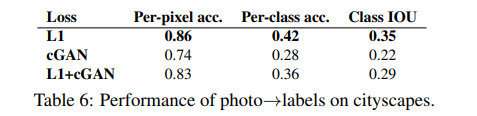 - 저자들은 vision problem에서 semantic segmentation같이 덜 애매모호한 graphics tasks에서는 L1과 같은 reconstruction losses만으로도 충분할 수 있다고 주장합니다.