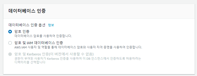- DB를 암호를 사용해서 인증할 것이기 때문에, 암호인증을 선택하겠습니다.