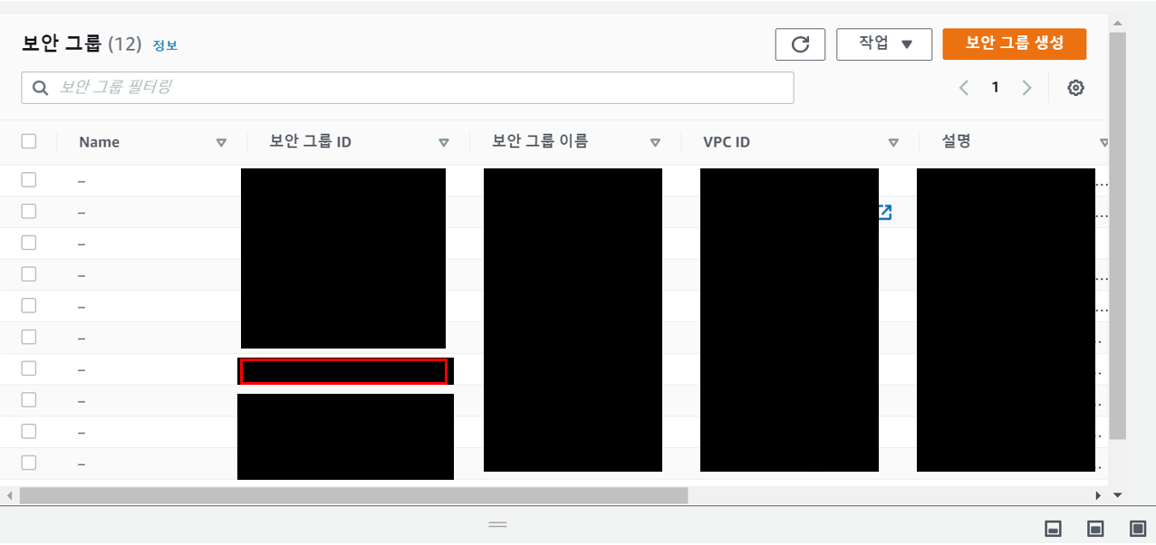 - 값: EC2 보안정책의 그룹ID(복사한 값)
