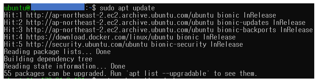 apt를 이용하여 docker를 설치할 예정이라 apt를 update 합니다.