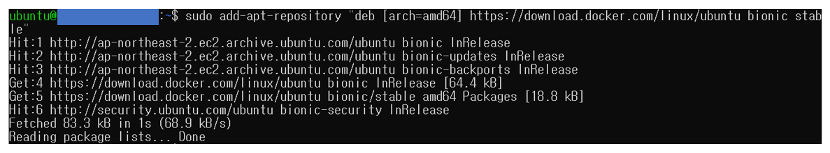 $sudo add-apt-repository "deb [arch=amd64] https://download.docker.com/linux/ubuntu bionic stable"