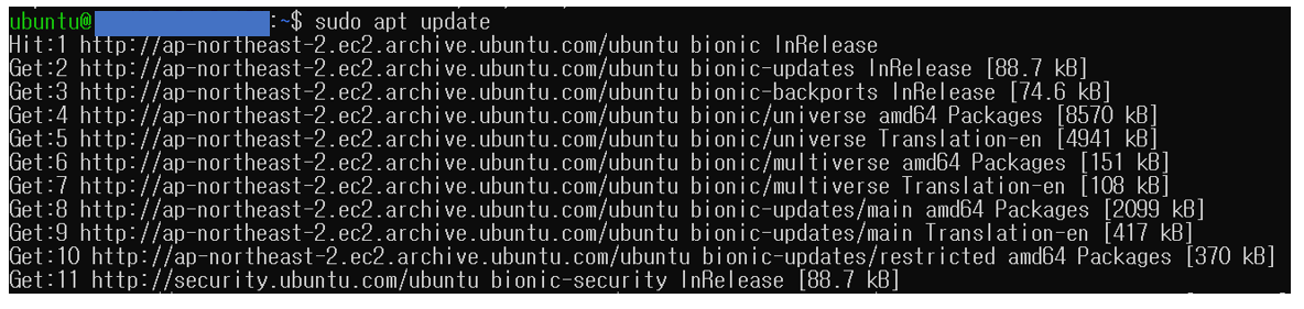 apt update를 실행합니다.